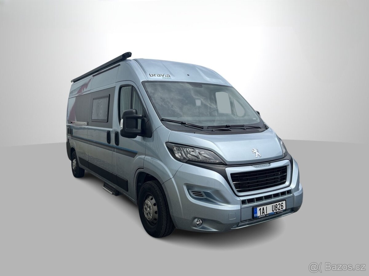Obytná vestavba pro 4 osoby na podvozku Peugeot Boxer se silným motorem 165 PS skladem, manuální převodovka. Registrace květen 2025, nájezd 23 120 km.