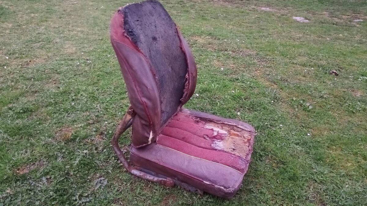 Nabízím sedadlo z veterána,pravděpodobmě BMW,Mercedes,před renovační stav,na konstrukci sedadla dochována armádní pískově žlutá barva,garážový původ,sklopné provedení konstrukce,více info není problém