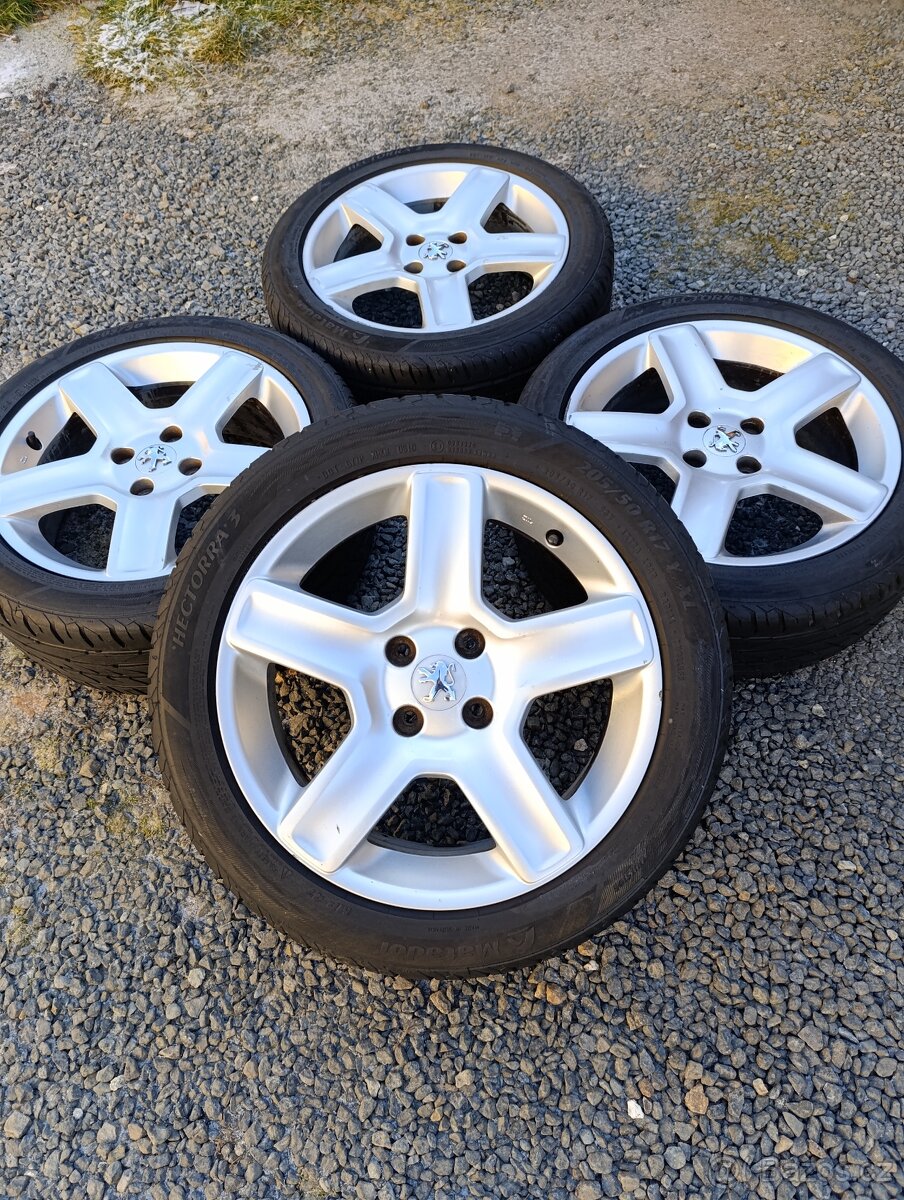 Originální Alu disky Peugeot, Citroen, rozteč 4x108 rozměr 6,5x17 ET-31 středová díra 65,1mm. Obuté pěkné letní pneumatiky Matador Hectora 3 o rozměrech 205/50 R17 93Y XL DOT-2019 se vzorkem 6mm všechny. Pneumatiky bez poškození . Disky v pěkném stavu, nenakopané, bez oxidace, nějaké oděrky se najdou nejsou nové.