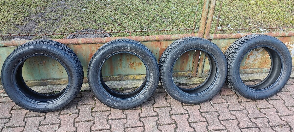Prodám 4x zimní pneu 205/55 R16 z toho 2xBFGoodrich vzorek 7,5 mm a 2xImperial Snowdragon vzorek 7,1 mm. Cena za komplet 1200 Kč