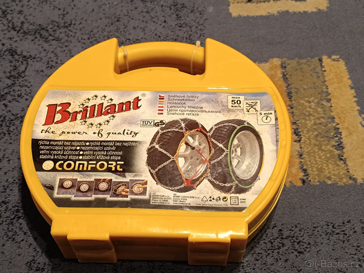 Prodám zánovní sněhové řetězy Brillant velikost 70 pro kola R13,R14,R15,R16.R17 (vice foto),křížová stopa, použité dvakrát, ve velmi dobrém stavu.