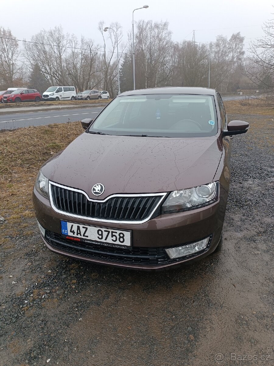 Prodám Škodu Rapid 1,6 TDI 85 KW. Pravidelný servis, 2. majitel. Rok výroby 2015. Najeto 172tis. Výbava: klimatizace, vyhřívání předních sedaček, vyhřívané elektrické zrcátka, tempomat, parkovací asistent přední i zadní, loketní opěrka, dělené zadní sedačky, automatické denní svícení, mlhovky, podsvícení do zatáček, prostorný kufr, plnohodnotná rezerva, tažné zařízení.