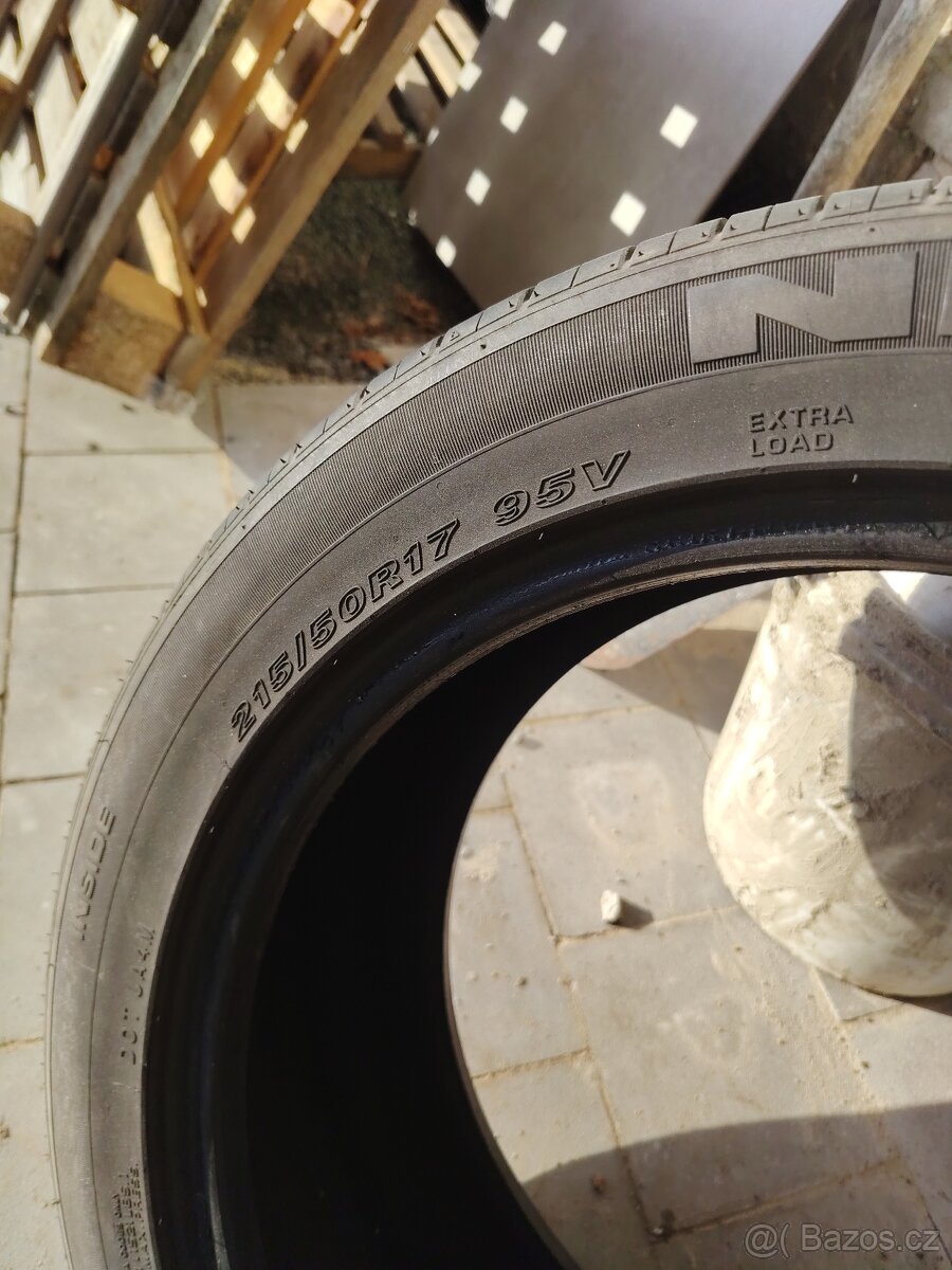 Prodám letní pneu nejen 215/50 r 17 vzorek ok, cca 60 %,komplet 4 kusy za 1500 Kč ...prosím nejdříve SMS nebo vatsap...děkuji