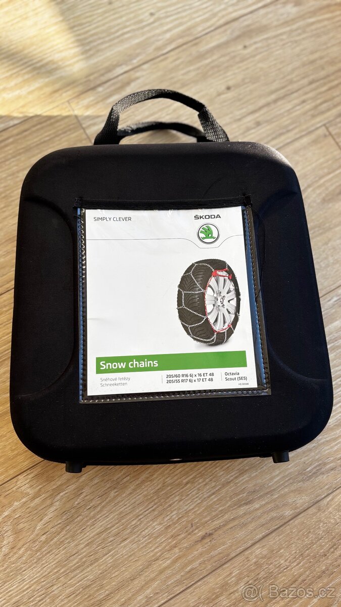 Prodám originál Škoda sněhové řetězy, vhodné na rozměr kol 205/60 R16 6JX16 ET 48, 205/55 R17 6Jx17 ET48.