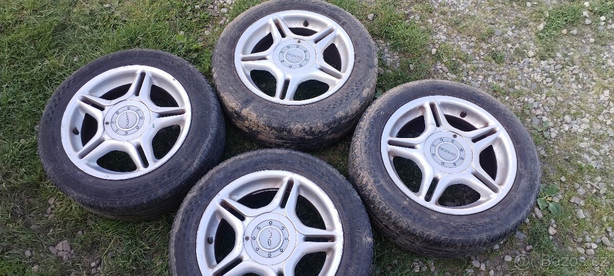 Alu disky 4x100 R15, 4x108 R15. Škoda, VW, Ford, Mazda, Opel, Honda,... 7Jx15, ET 38. Dezent. Letní pneu 195/55/15 2 X 6mm, 2x5 mm vnitřní část sjeta. Cena za sadu