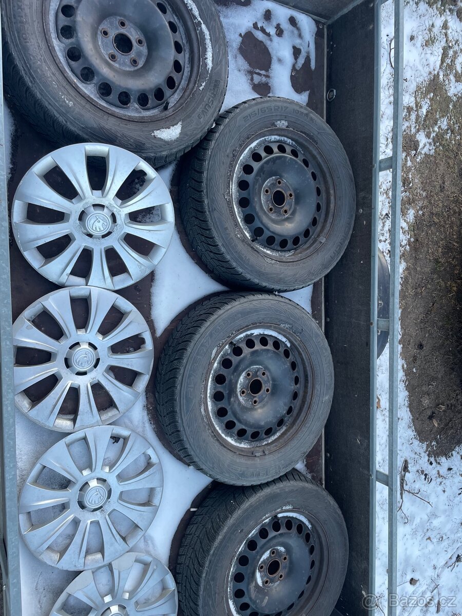 ŠKODA,VW - [28.2. 2026]Kompletní zimní kola na ŠKODA KODIAQ,VW TIGUAN,CADDY.. 215/65 R17,tozteč 5x112,ET 38.