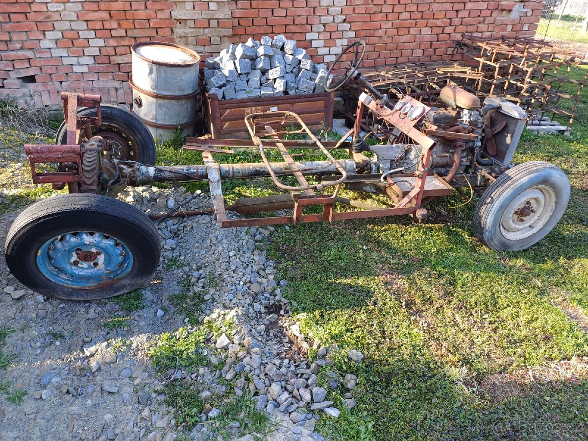 Prodám podvozek Škoda 1202 stw, děda si to chystal na odvoz dřeva, z toho však sešlo, delší dobu odstaven, motor jde protočit. Motor a převodovka jsou ze Škody Octavaie. Spíše pro někoho na díly. Prodám za cenu dílů 5000 Kč. Uschován pod plachtou.