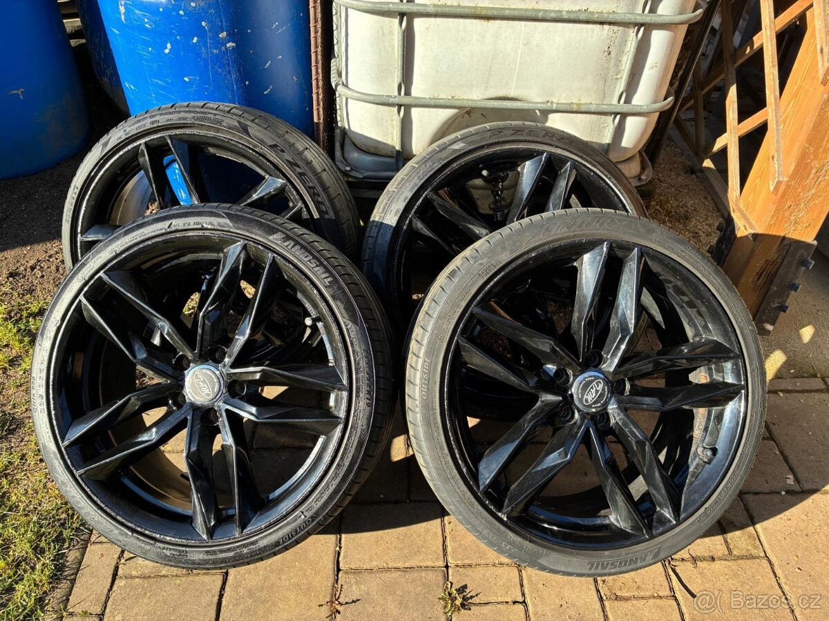Sada letních hliníkových černých kol na Škoda Octavia, Superb, VW , Seat,... 8,5Jx19 H2 ET45, 5x112, 2x Pneu Pirelli 235/35/19 cca 6 mm DOT 0424, 2x Pneu Landsail Sentury 235/35/19 cca 3,5 mm DOT 0120, nově vyvážené, drobné oděrky