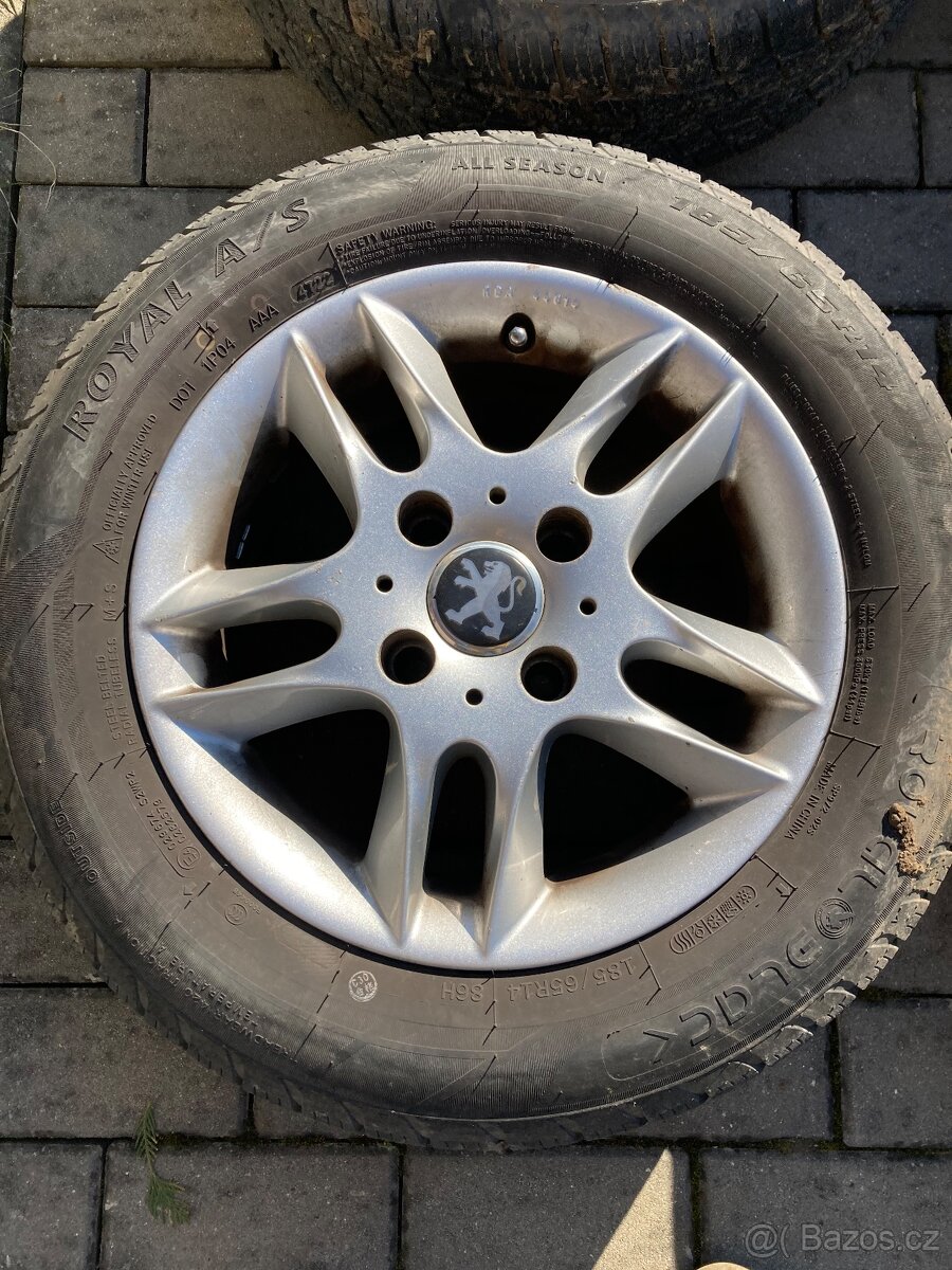 Obuté na celoročních pneumatikách, kola jsou v dobrém stavu, připravena k použití