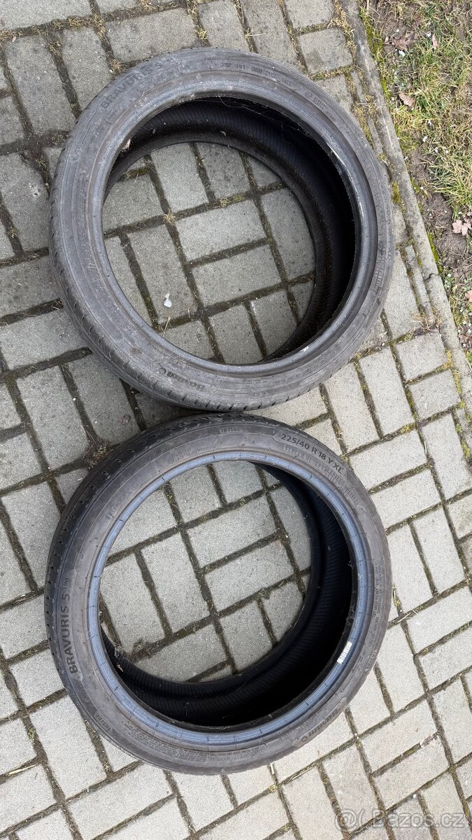Prodam 2ks pneumatik Barum Bravuris 225/40/R18/YXL. 2 sezóny ježděné, bez oprav, vzorek více než 4mm.