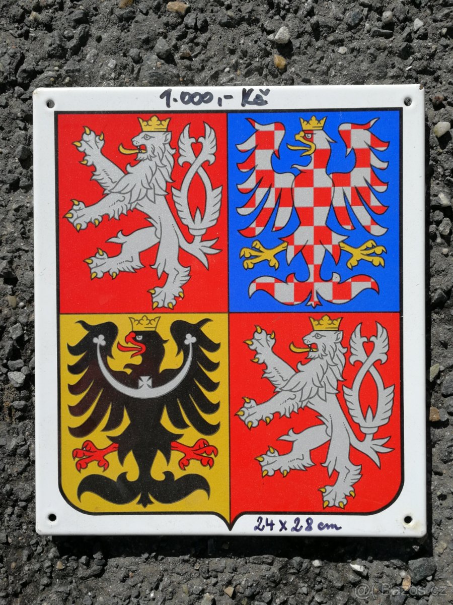 Smaltovaný plechový znak CS, kvalitní bombírovaný plech, pravý pálený smalt, co je na fotce, vhodné na veterána, jako dekorace, pro reklamu jako poutač, pro sběratelé do sbírky, suvenýr i jako dárek. Cena od 250,- Kč, možnost zaslání.