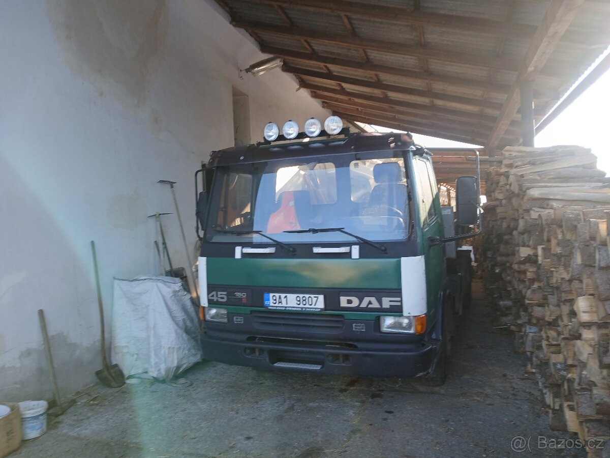 DAF hákový nosič kontejnerů rok výroby 2000 velmi dobrém stavu,bez močoviny třída II 6 válec,tip AE 45.150 B08 365 pohotovostní 3630 kg ,celková 5990kg,STK nová do 19.1.2027,k vozidlu přidám ještě jedno stejné auto na náhradní díly.Kontejnery 7kusů různé druhy samostatně dohodou .Využíváné pouze pro soukromé účely párkrát do roka.