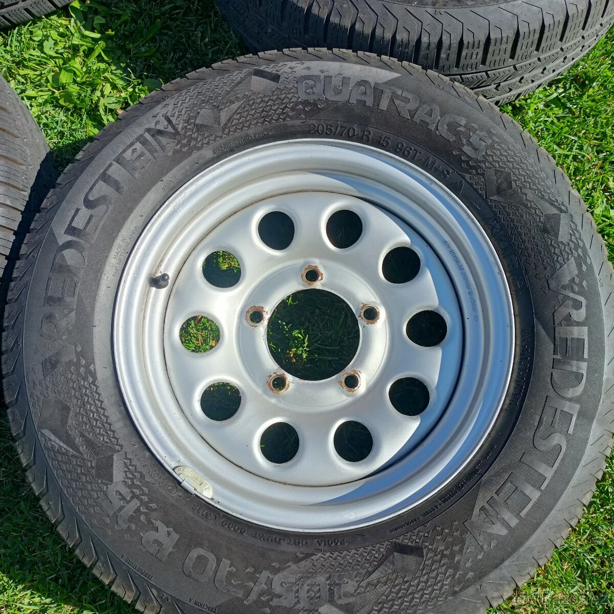 Plechové disky Suzuki Jimny - [12.4. 2026]Plechové disky na Suzuki Jimny čtyři s pneu 205/70 R15 na dojetí a dvě pneu bez disků.