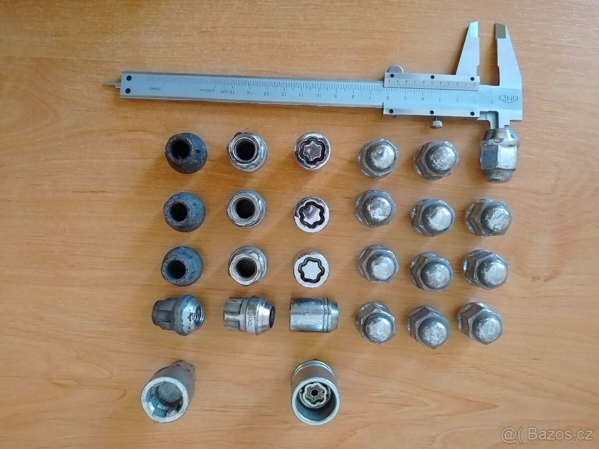 Prodám bezpečnostní šrouby na kola. Jedna sada šroubů je označena popiskem 12x1,25, vnitřní průměr všech šroubů je 1,07 (viz přiložená šuplera). Uvedená cena je myšlena za kus, dohoda možná.