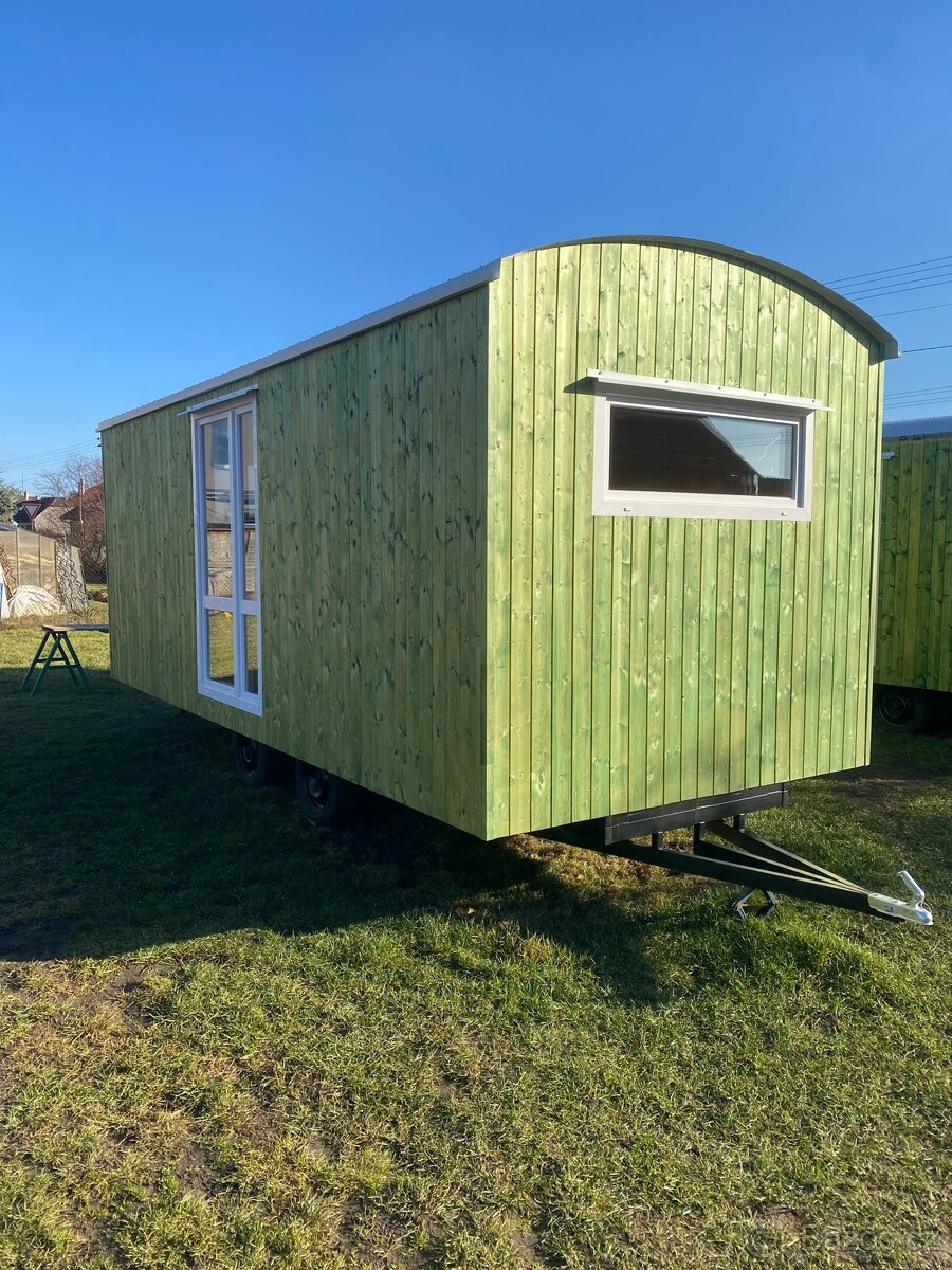 Maringotka je zateplená včetně podlahy a má hotové rozvody elektroinstalace.