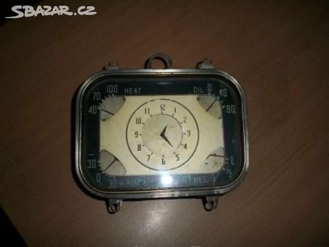 Prodám sdruženou přístrojovou desku asi Chrysler, velikost 12 x 17 cm, 6 V, odzkoušená, funkční, r.v. cca 1938-42, cena + poštovné dobírka.