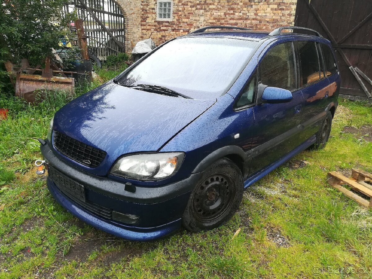 Prodám Opel Zafira 2.2i, rv 02, 7mist, kůže, vyhřívaná sedadla, climatronic, xenony, parkovací senzory, nárazníky, prahy a maska irmischer, krásný interiér bez poškození. 2x klíč, Central na DO, Ceské RZ. Motor běží, ale jeden válec má špatnou kompresi.