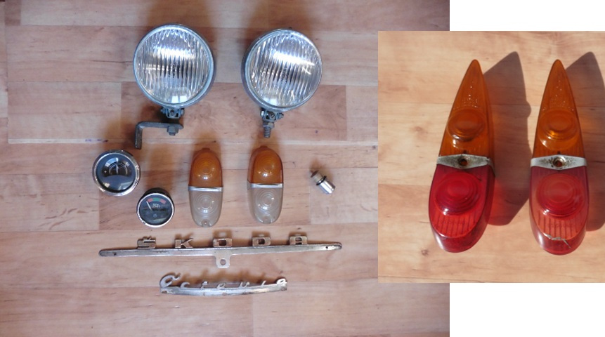 Prodám krytky zadních světel na Škodu Spartak rok 1955, v pěkném stavu, cena 600 kč, kryty zadních světel na octávii za 600 kč a plechový nápis Škoda a Octavia za 650 kč/ks, mlhovky za 200 kč, budíky 100 kč /ks, zapalovač do přístrojovky 200 kč