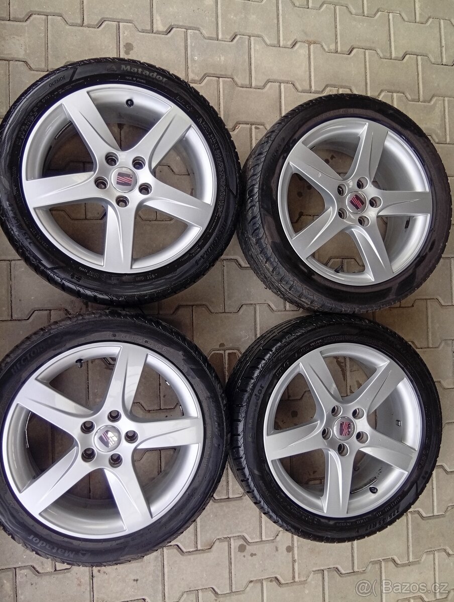 Prodam ALU kola a Seat R 17, v moc hezkém stavu neponičené s pneu a vrorkem 7 mm . Rozměr 225/45 R17 a značkou matador. 7.0J*17H2 ET54 originál Seat .při rychlém jednání sleva