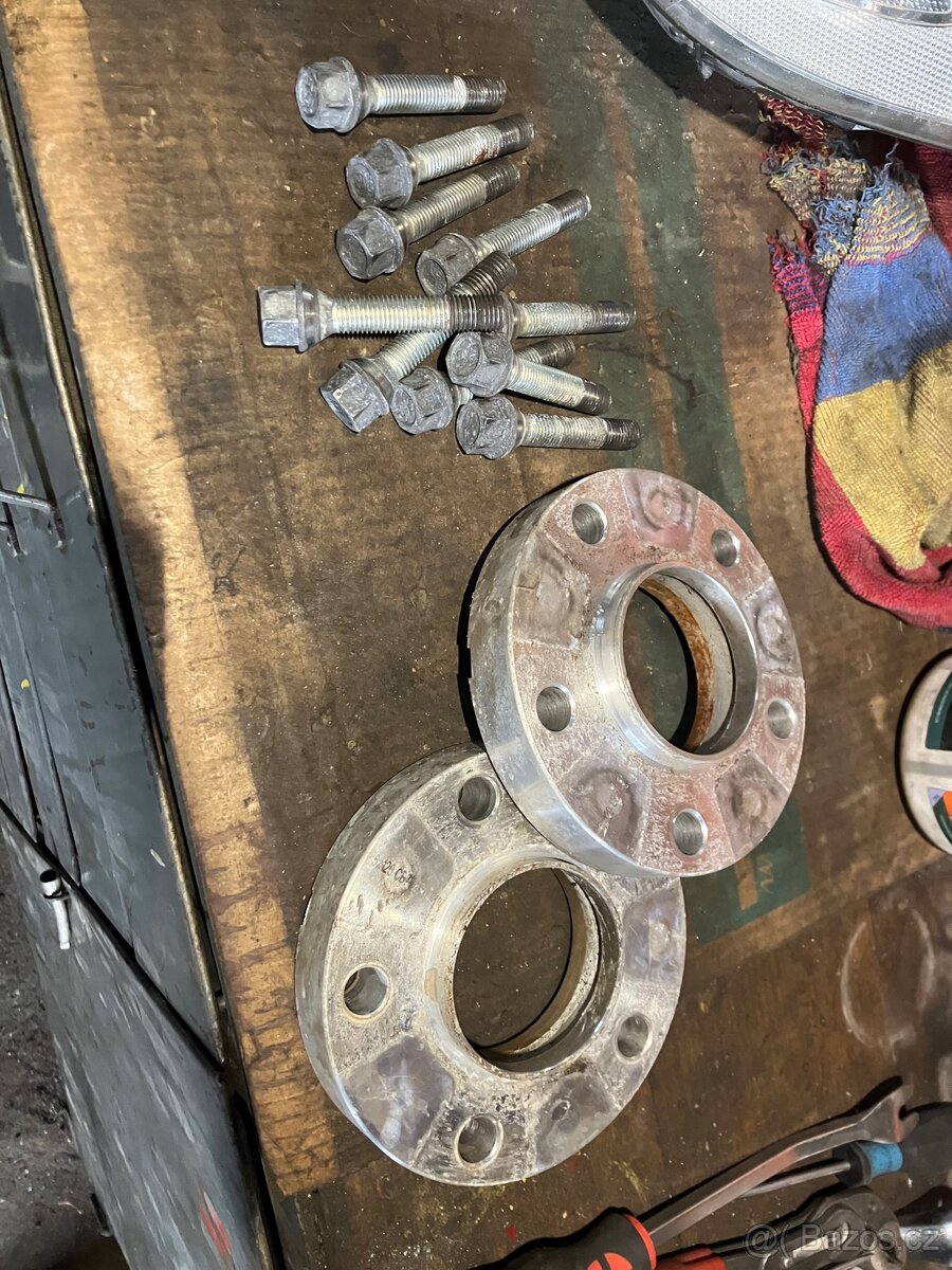 Podložky 15mm, BMW 5x120 - [15.3. 2026]Prodám 2ks podložek 15mm na BMW - rozteč 5x120, včetně šroubů M12x1,5x39 kužel.