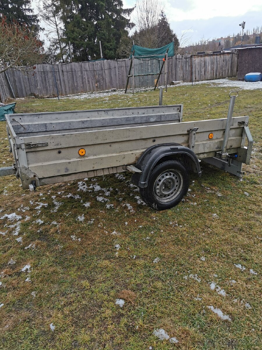 Prodám nebržděný přívěs do 750kg r. v. 2013 v dobrém stavu. Rozměr ložné plochy je 2505cm D a 1252cm Š Přívěs byl zakoupen u společnosti Auto Via. Je postaven na pevném rámu zády šmejd z Obi a podobně. Má opěrné kolečko a na zadní části dvě vysouvací podpěrně nohy plus nová podlaha a šest ok k uchycení nákladu. Cena 24000kč Při solidním jednání se slevě nebráním.