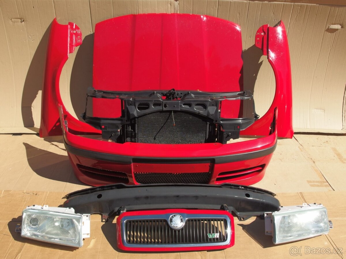 Nabízím předek Škoda Octavia I RS. Součástí sady je přední nárazník, výztuha, kompletní chladičová stěna (chladič AC, vodní chladič, ventilátor chladiče), přední světla, kapota, maska a blatníky. Barva červená corrida, číslo barvy 8151. Dovoz Velká Británie. Cena 28000,-Kč.