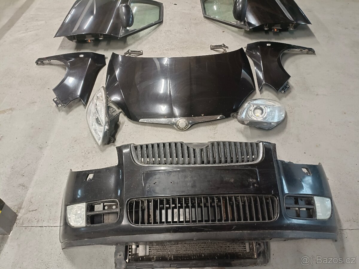 Prodám Škoda Fabia MK2 přední část karoserie (čumák) přední nárazník,světla,kapota,chladíčová stěna,blatníky, dveře