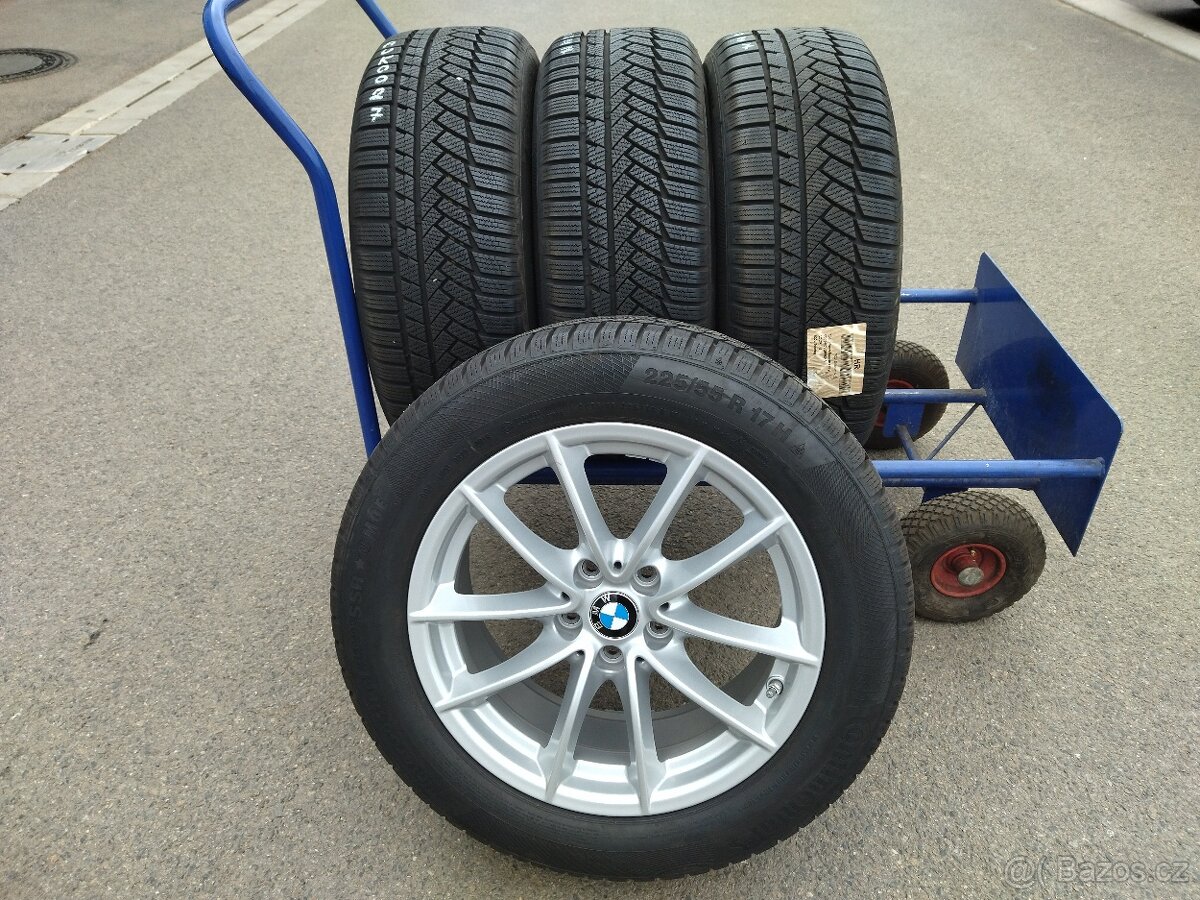 Prodám sadu zimních Alu kol BMW 5. Rozteč šroubů 5x112, rozměr disku 7,5Jx17/ET27, středová díra 66,6mm