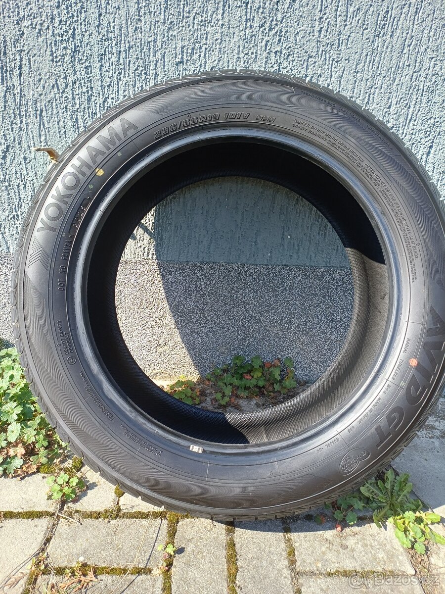 Prodám letní pneumatiky značka Yokohama 235/55R19101V. Pneumatiky jsou z sundané z nového auta, mají najeto cca 50 Km. Nechám je za cca 50%.