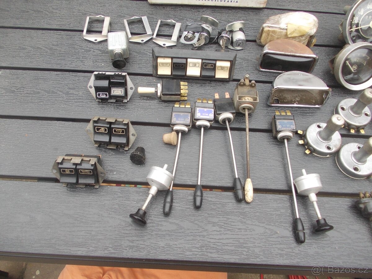 Budíky ,přepínačky popelníky stěrače ,přepínače světel nožní nové.