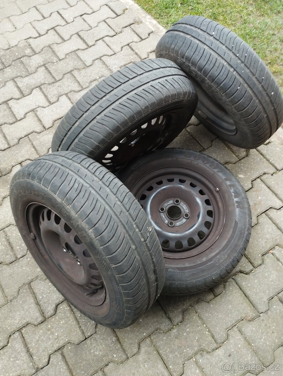 Nabízím 4ks zimnich pneu na plech.discich Goodyear 185/70/R14, jednu sezonu použité.