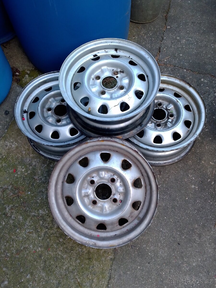 Plechové disky 5,5 J13, 4x100, širší zesílené ,pro pick up , hodí se i na ostatní Felicie, nebo VW či přívěs Agados, Pongratz atd. Celkem zachovalé.