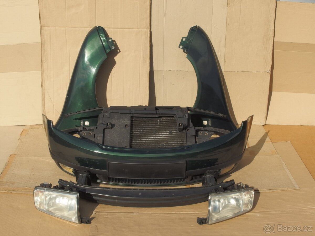 Nabízím kompletní předek Škoda Fabia I. Součástí sady je přední nárazník s mlhovkami, výztuha, kompletní chladičová stěna (vodní chladič a ventilátor chladiče), přední světla a blatníky. Barva zelená přírodní metalíza, číslo barvy 9570. Dovoz Velká Británie. Cena 12000,-Kč. Možno prodat bez blatníků.