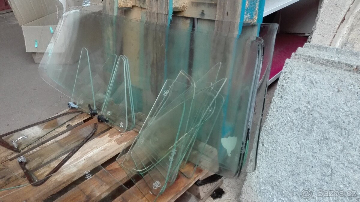 Prodám použité autoskla asi na Škoda 1000. Jedná se o 1ks přední a 3ks zadní + boční viz foto.