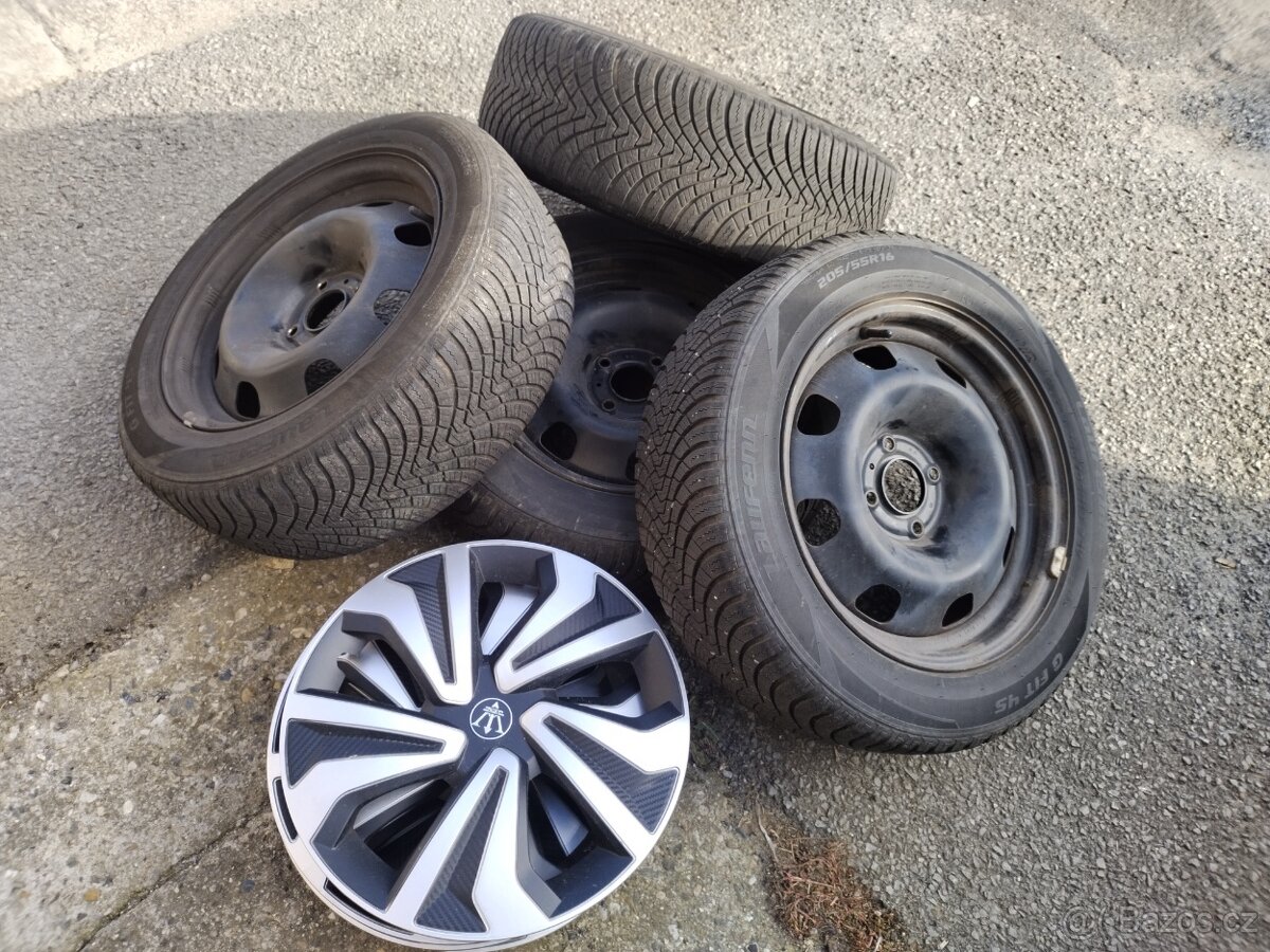 Prodám disky + pneumatiky + poklice z Peugeot 307. Pneumatiky celoroční na dojetí LAUFENN GFIT 4S LH71, disky i pneumatiky jeté pouze jednu sezónu.