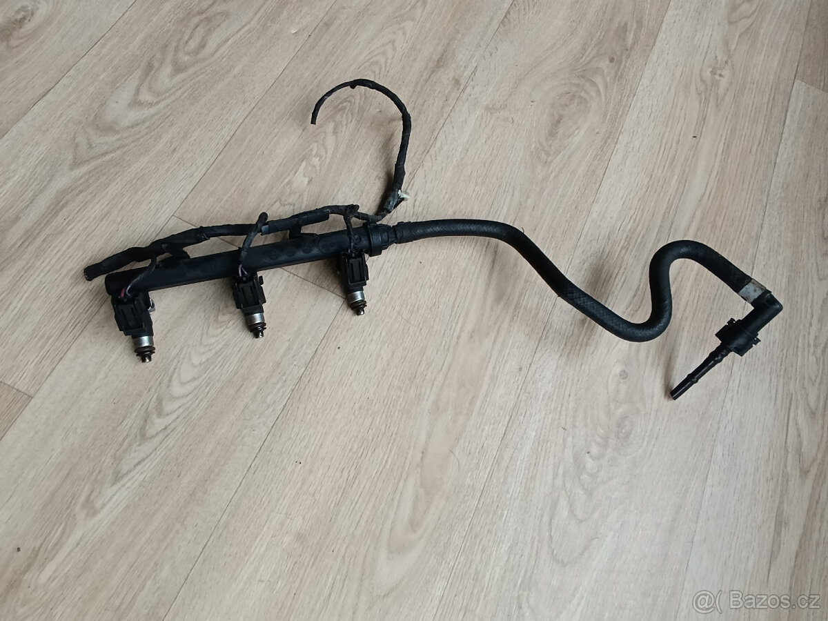 1/ Palivový rozdělovač vstrikovaci lista, vstrikovaci rampa 04C133317E, 04C133317, 04C133317J, se vstriky vw up skoda citigo seat mii.