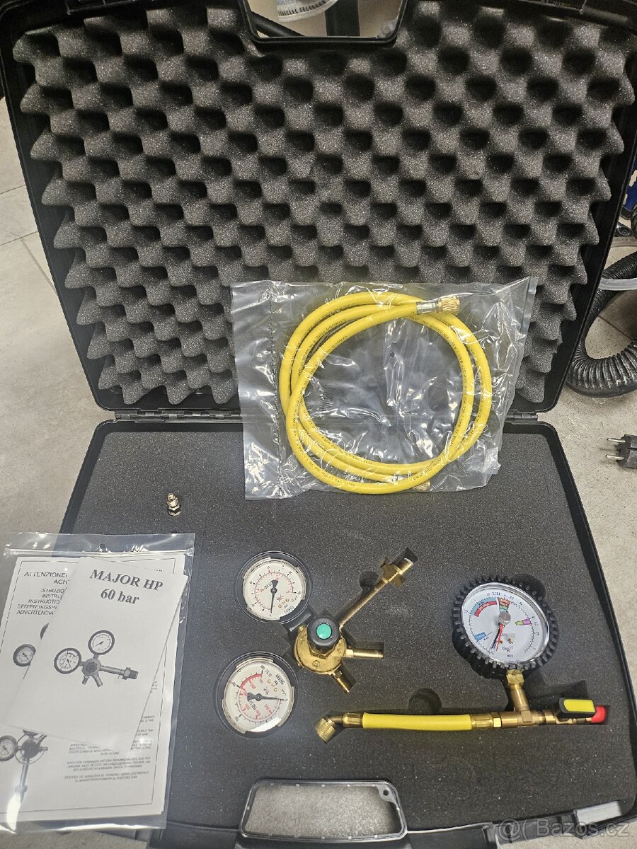 souprava pro testování dusíkem - bez 1 kg láhve, rychlospojka nízkotlaká s ventilem M14 vnitřní, rychlospojka vysokotlaká s ventilem M14 vnitřní, láhev dusíková 5 litrů, detektor univerzální R134.a, 1234yf, vodík 12.038