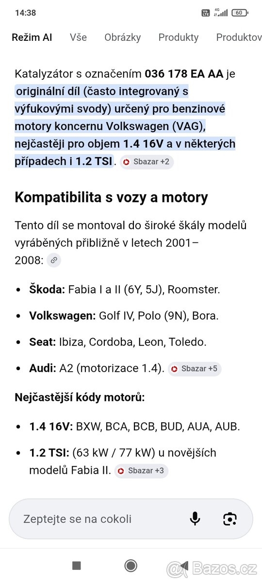 Katalyzátor G07FPO hyndai,Kia 1,0t-gdi 88kW - [27.4. 2026]Prodám katalyzátor G07FPO na vozy Hyundai,Kia 1,0t-gdi 88kW najeto 50000km