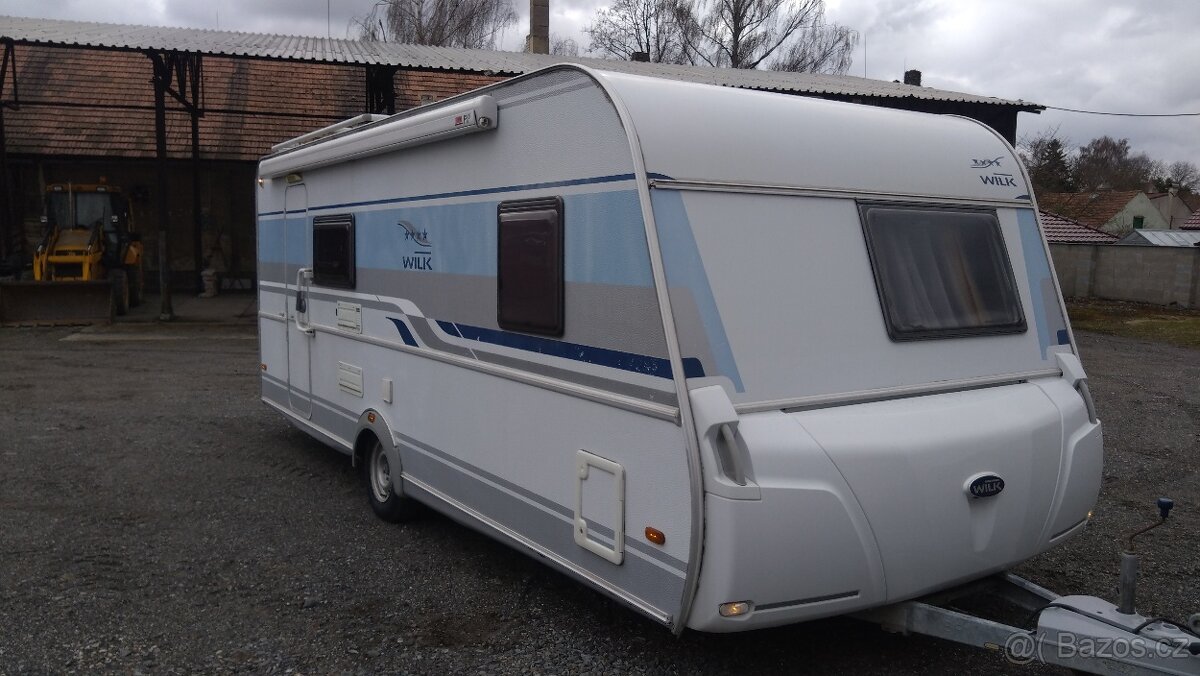 Prodám obytný karavan WILK S4 DM550, rok výroby 2009. Délka 7,5m, šířka 2,5, váha 1250/1500kg, jednoosý. Výrobce Knaus-Tabbert group. Čerstvá technická, nové pneu. Výbava - el.podlahové topení, palanda, kombinovaná lednice el/plyn, kombinovaná kamna el/plyn, ezs s plynovým čidlem, 2x boiler el/plyn, TV skříňka, všechna okna se síťkami, vstupní dveře se síťkami, zimní předstan použitý, letní velký předstan zcela nový, velká markýza, zahrádka. Nutná výměna vaničky.