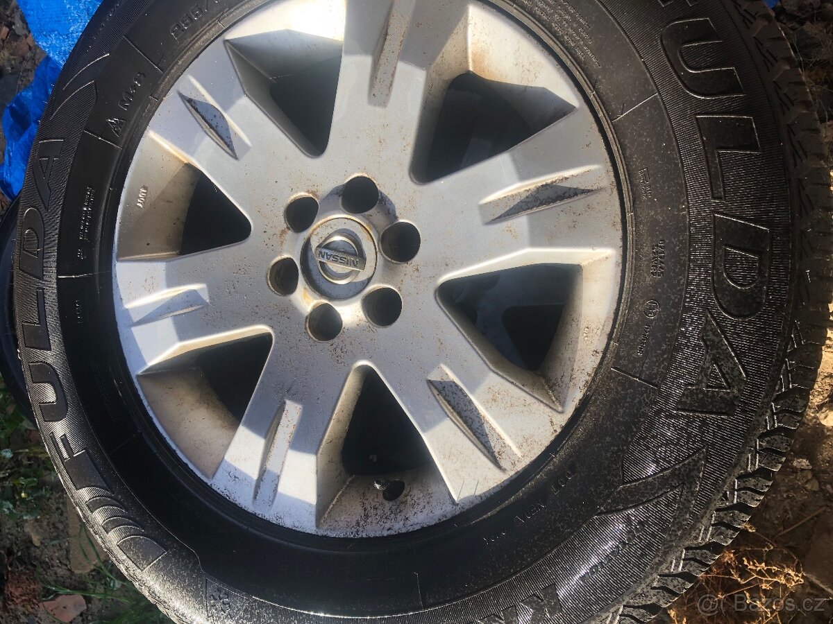 Alu kola 17 Nissan - [21.4. 2026]Prodám originál alu kola 7J x 17 Et 47 na vozidlo Nissan, starší letní pneu o rozměru 215 55 17.CCa 4-5 mm.
