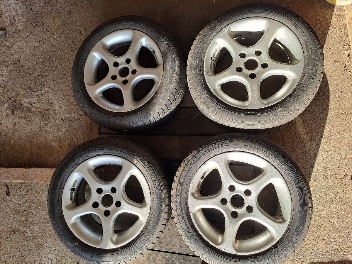 Prodám litá kola + letní pneu Dunlop 195/55 R15. Rozteč a stav viz foto.