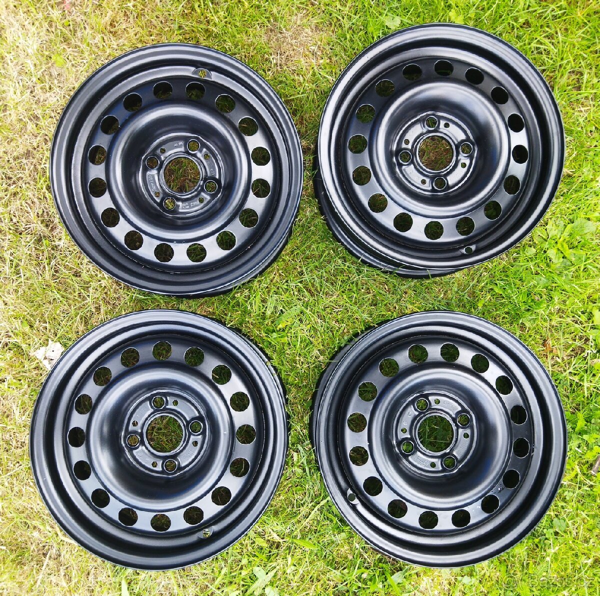 Zcela rovné, po renovaci (2020) nejeté orig. plechy na BMW E30. Pasují na BMW E21, VW Golf, Polo, Opel. Rozteč 4x100, střed 57,1.