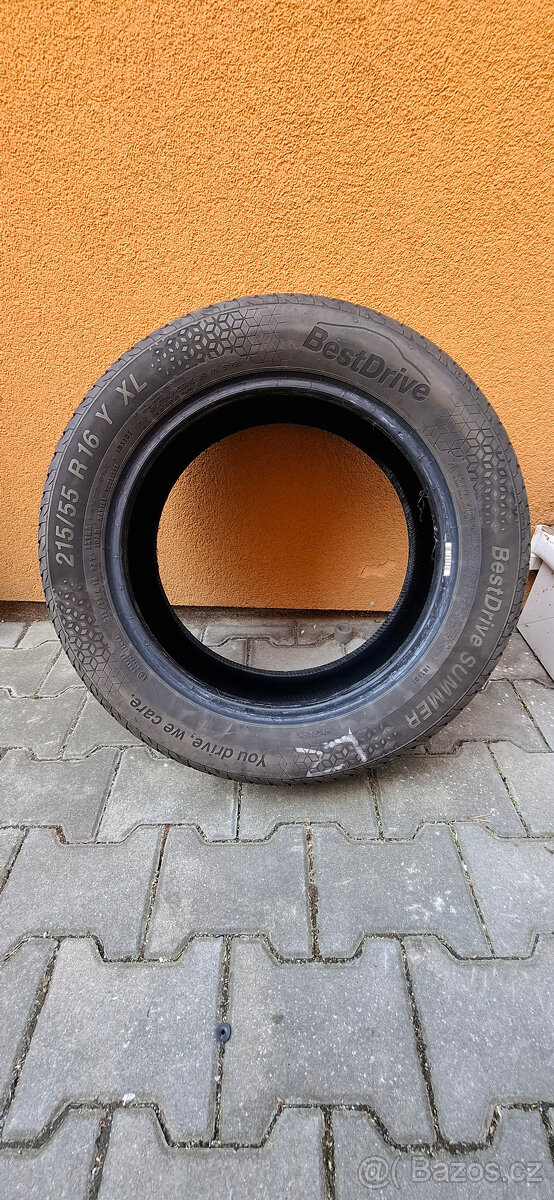 Pneu 215/55/16 - [13.4. 2026]Prodám letní pneumatiky 215/55 R16 97Y Bestdrive, hloubka dezénu je cca 2x4mm, cena za kus, pouze osobní odběr.