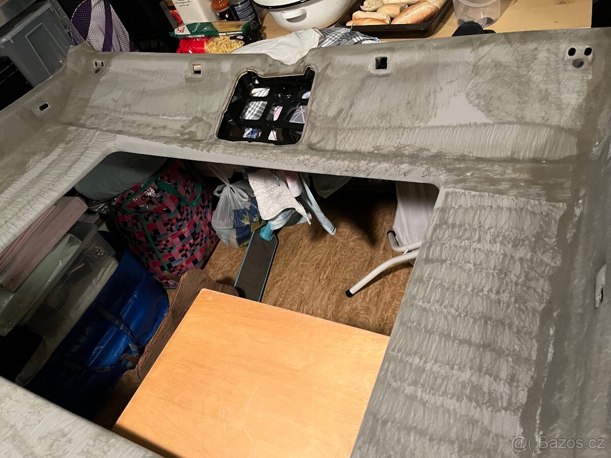 Stropnice z Mercedes G w463 byla potažena alcantarou cernou, odlepeno, nový majitel musí sundat klasicky základ a dat novou potahovou látku na slabý molitan, popr. originál látka stropnicova s molitanem.