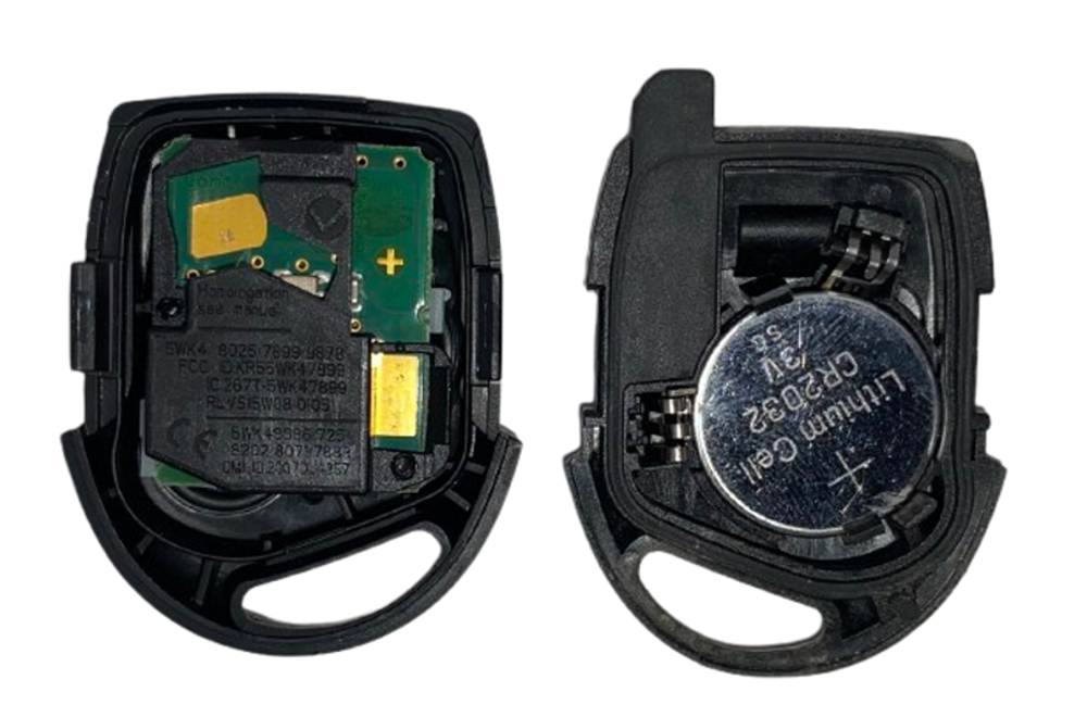 Nový obal klíče s originální použitou deskou 1K0959753N 434MHz s novým čipem ID48 can, Baterie CR2032, logo Vw Škoda, Seat.