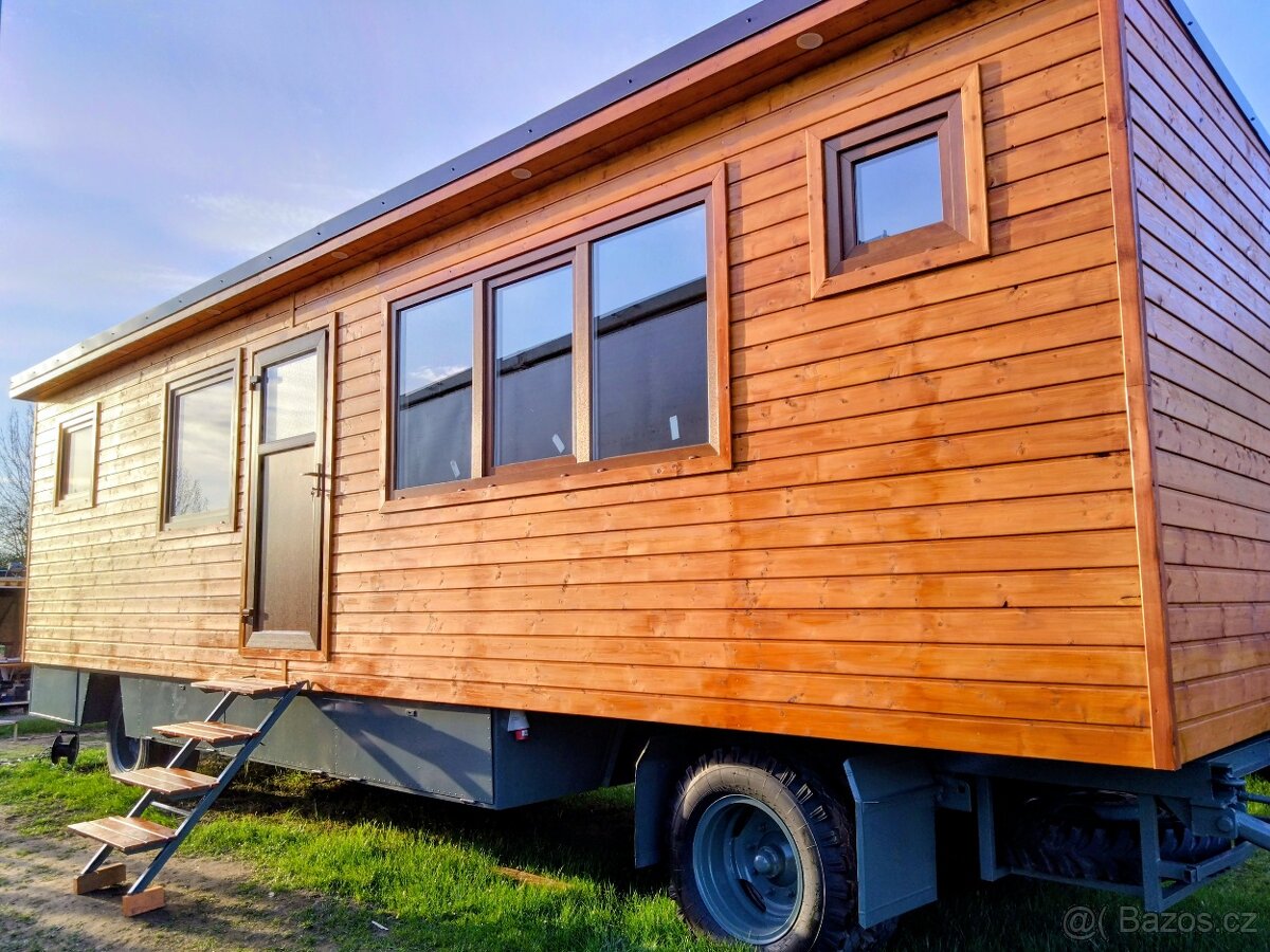 kompletně zateplená, el. rozvod, led osvětlení, na masivním podvozku, celoročně obyvatelná, Připraveno na dvě přepážky (ložnice, koupelna)
