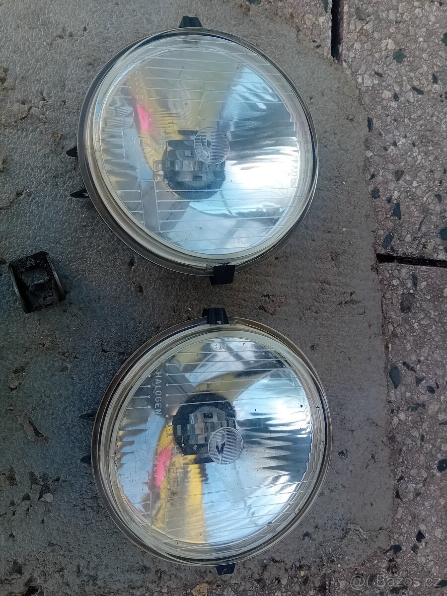 Prodám přídavná světla na auto vhodné na veterána nebo starší auta stav viz foto.prumer 15 cm. Dohoda