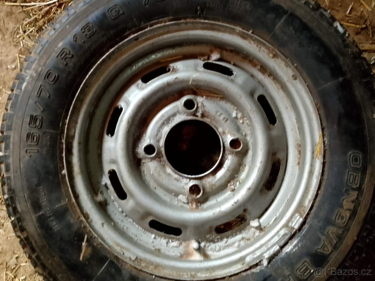 13” kola 4x98 + pneu 155/70 R13 - [19.4. 2026]Prodám 13" kola 4x98 mm + pneu 155/70 R14, střed 58,1 mm, bylo na Fiat Panda,