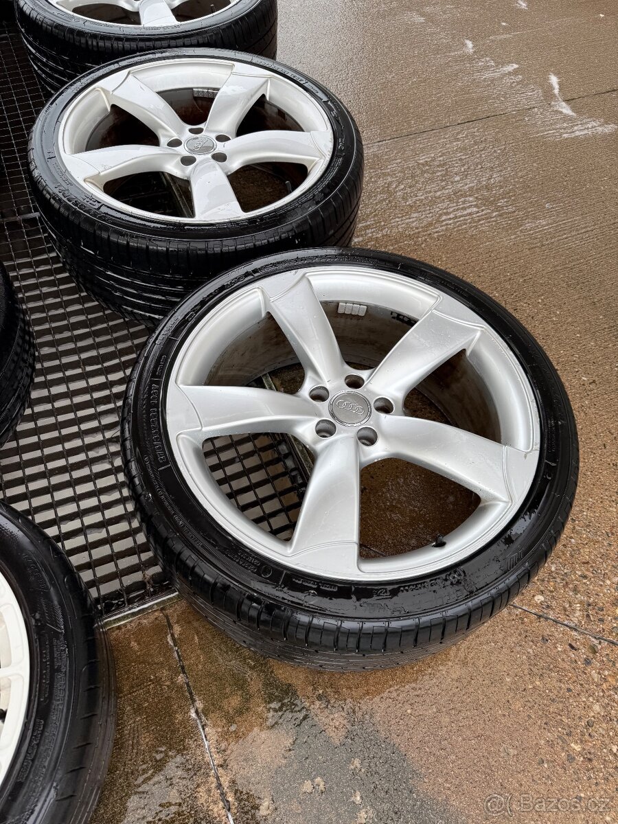 Prodám kola s letními pneumatikami, rozteč 5x112, pneumatiky 275/35/ZR21, stav a dezén viz foto.