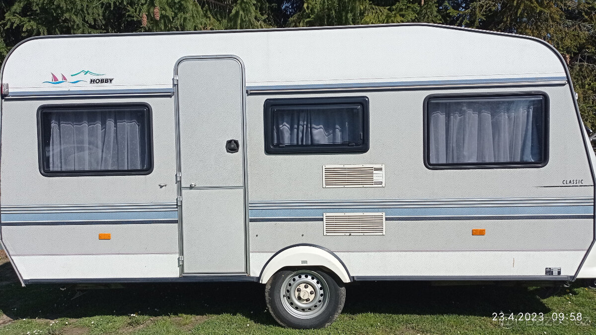 Popis: Nabízím starší lehký karavan HOBBY 455 pro 2-3 osoby, včetně předstanu a sluneční clony.